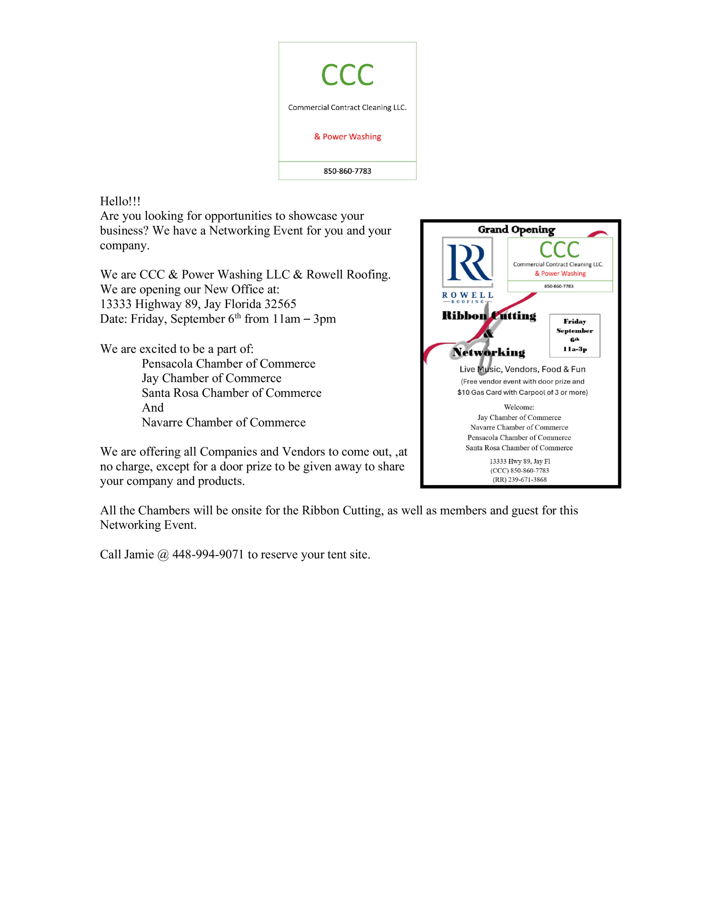 Ribbon Cutting and Grand Opening for CCC & Powerwashing LLC and Rowell Roofing