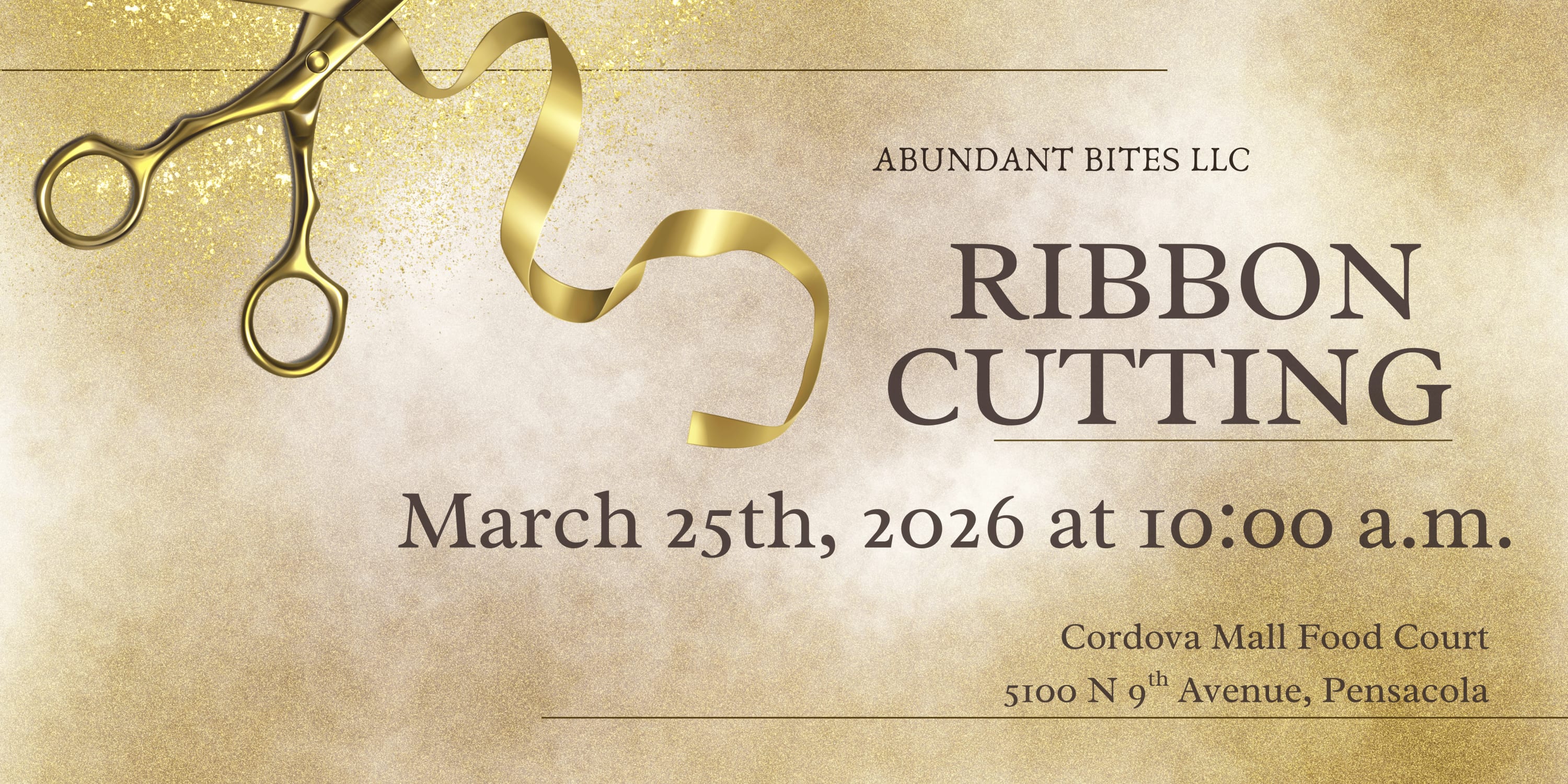 🌿✂️ RIBBON CUTTING CELEBRATION – Abundant Bites! ✂️🌿 Join us as we officially welcome Abundant Bites with a Ribbon Cutting Ceremony! 🎉 Come out and help us celebrate this exciting new addition to our community! Abundant Bites is serving up delicious options you won’t want to miss. ✨ Meet the team ✨ Enjoy networking ✨ Support local ✨ Bring your business cards! Let’s give them a warm Chamber welcome and show up BIG! We hope to see you there! 💚Additional Info