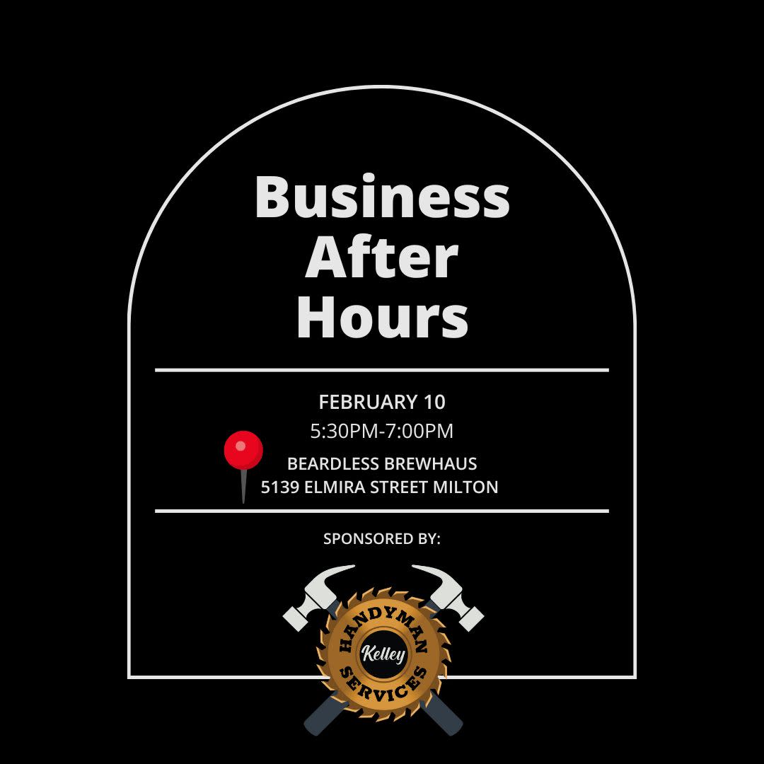 ✨ Business After Hours ✨ Join us for an evening of networking, conversation, and community connections! 📅 February 10 ⏰ 5:30 PM – 7:00 PM 📍 Beardless Brewhause 5139 Elmira Street, Milton Enjoy great company and a relaxed atmosphere while building relationships with fellow Chamber members and local professionals. 👏 Sponsored by: Kelley Handyman Services We look forward to seeing you there! 🍻🤝