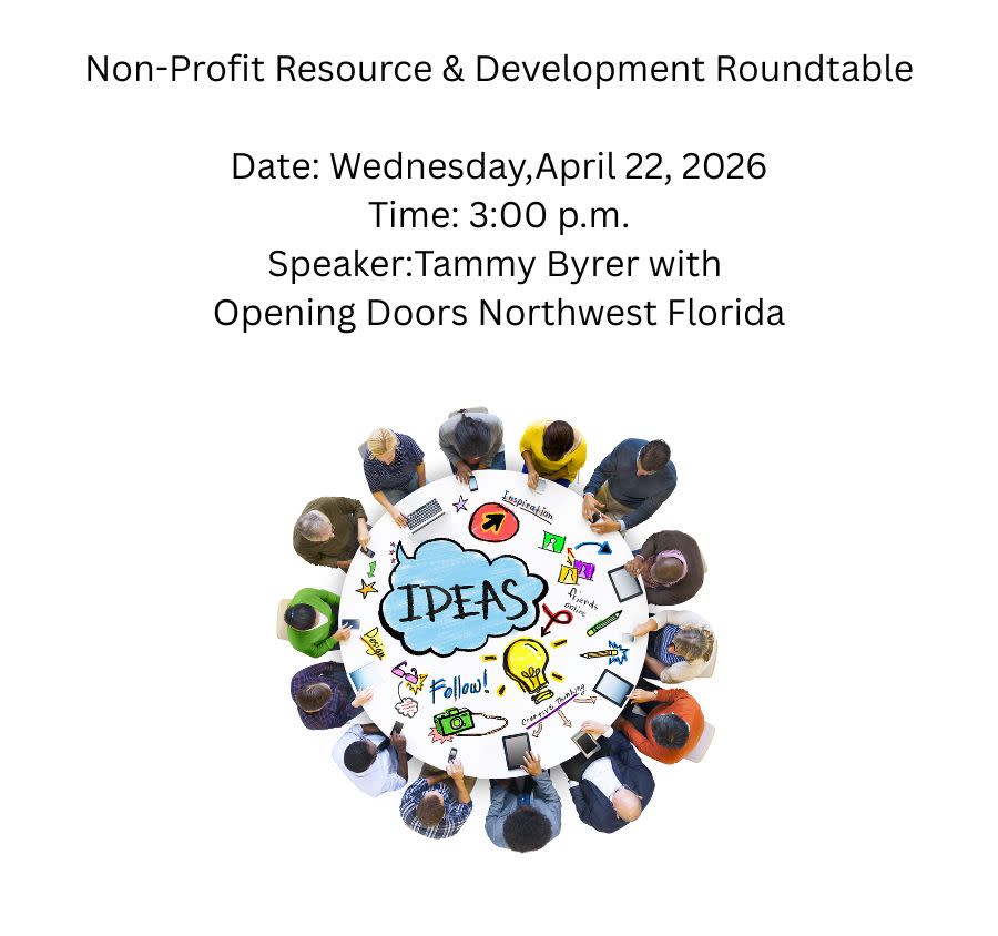 We invite you to the April Non-Profit Roundtable meeting to be held Wednesday, April 22, at 3pm in the conference room at the chamber. Speaker for this event will be Tammy Byrer with Opening Doors Northwest Florida.