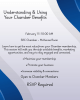 Learn how to get the most value from your Chamber membership. This session will walk you through available benefits, marketing opportunities, and ways to stay engaged and connected. • Maximize your membership • Promote your business • Increase ...