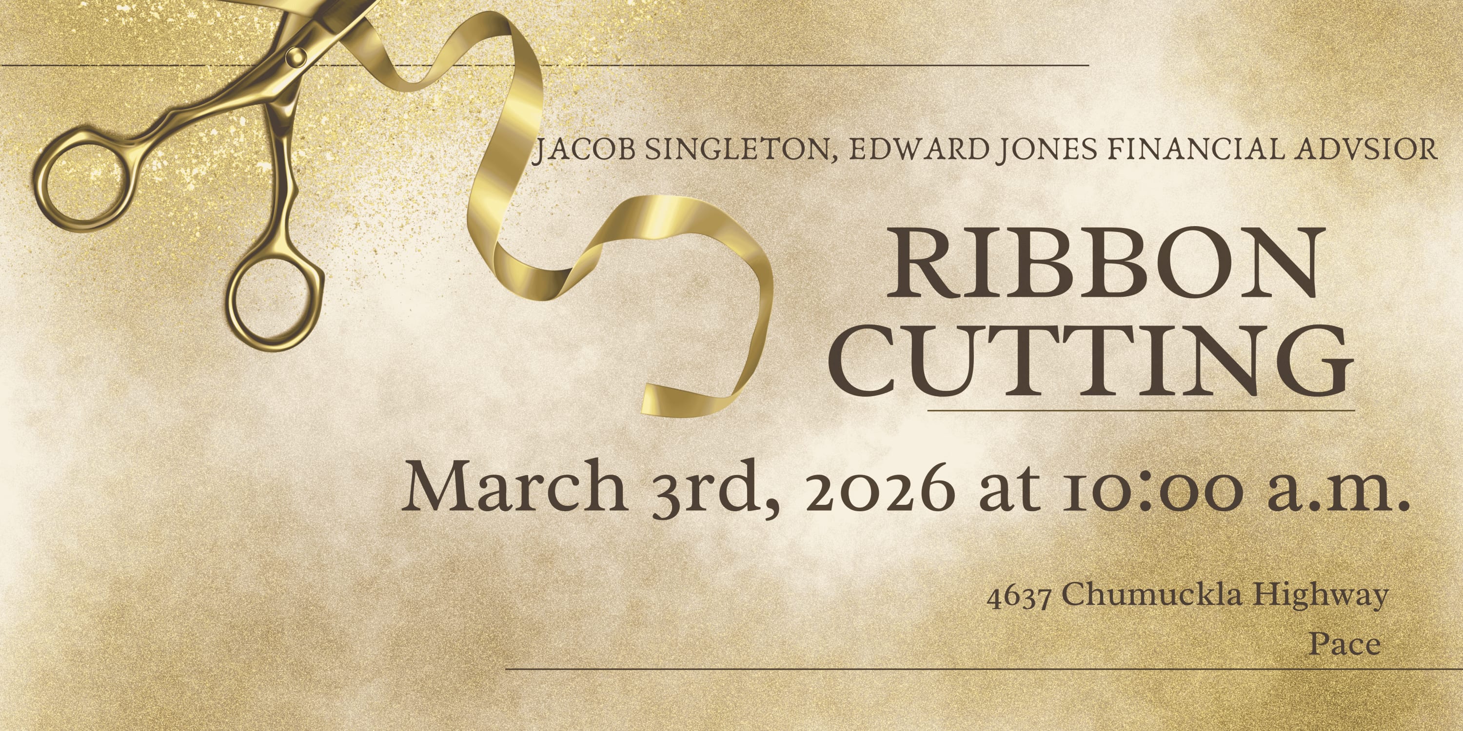 ✂️🎉 Ribbon Cutting Celebration – Jacob Singleton, Financial Advisor with Edward Jones 🎉✂️ Join us as we celebrate Jacob Singleton and his official Ribbon Cutting! 📅 March 3rd, 2026 ⏰ 10:00 a.m. 📍 4637 Chumuckla Highway, Pace Come out and help us welcome Jacob to the community! He is dedicated to helping individuals and families reach their financial goals, and we’re excited to celebrate this milestone with him. Bring a friend and let’s show our support! 💛✂️Additional Info
