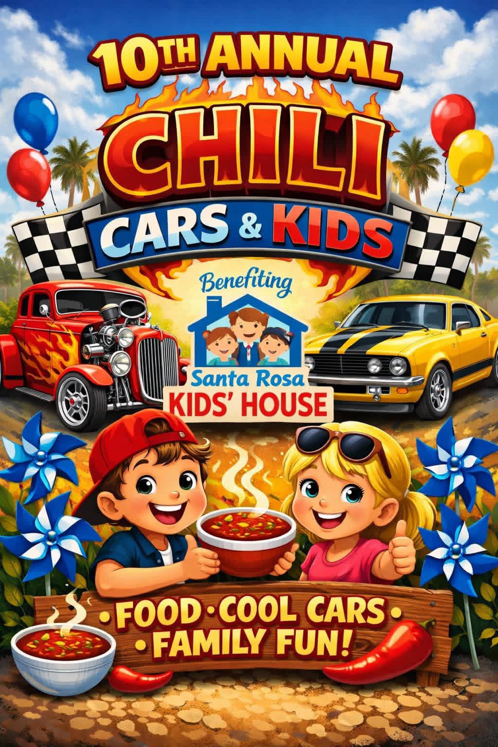 The 10th Annual Chili, Cars & Kids returns on Saturday, February 28, 2026, from 10:00 AM to 2:00 PM at the Santa Rosa County Administration Building parking lot (behind the Milton McDonalds).
